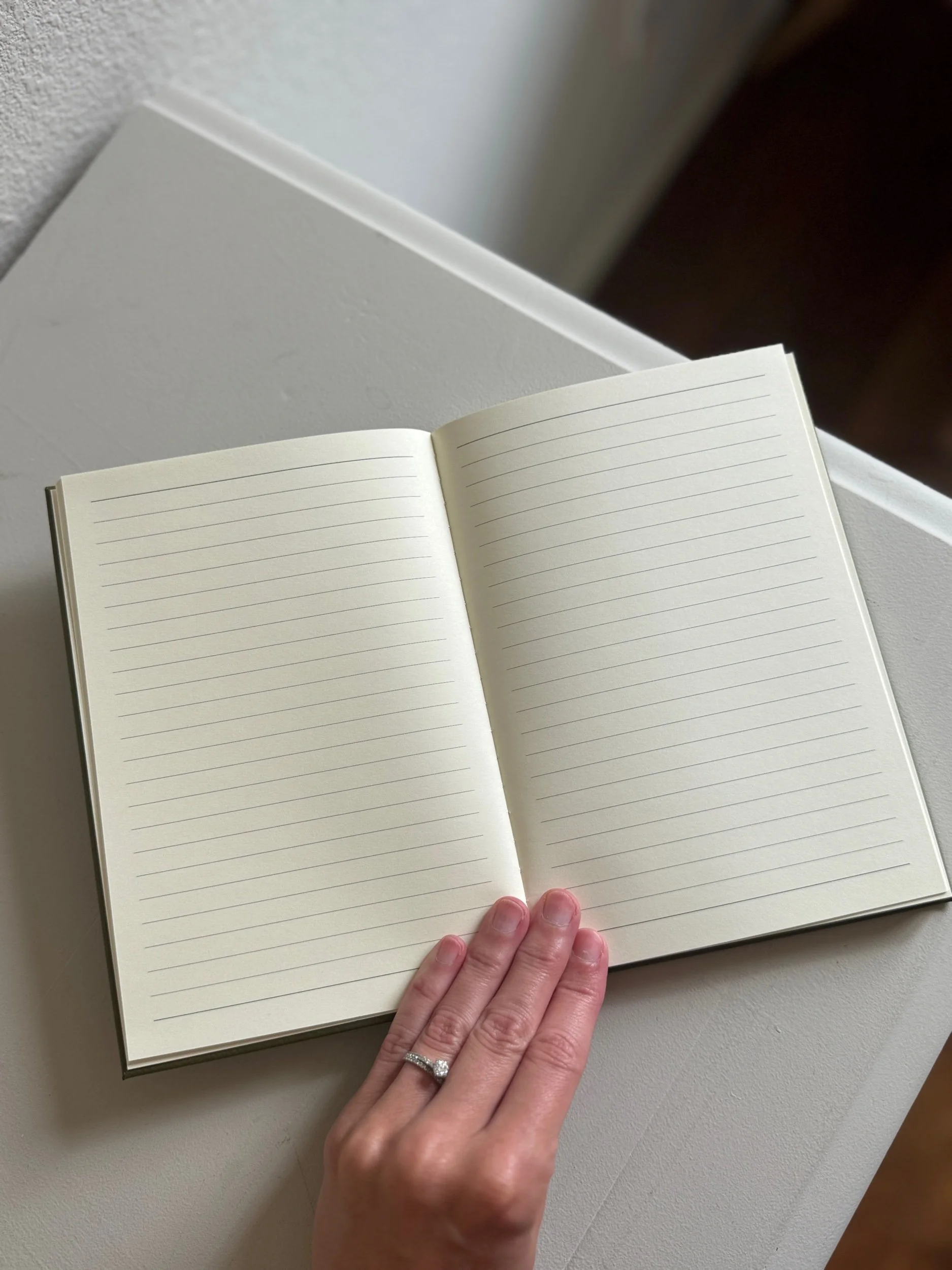 The pages are lined and the notebook measures 5.75 in x 8.25 in.