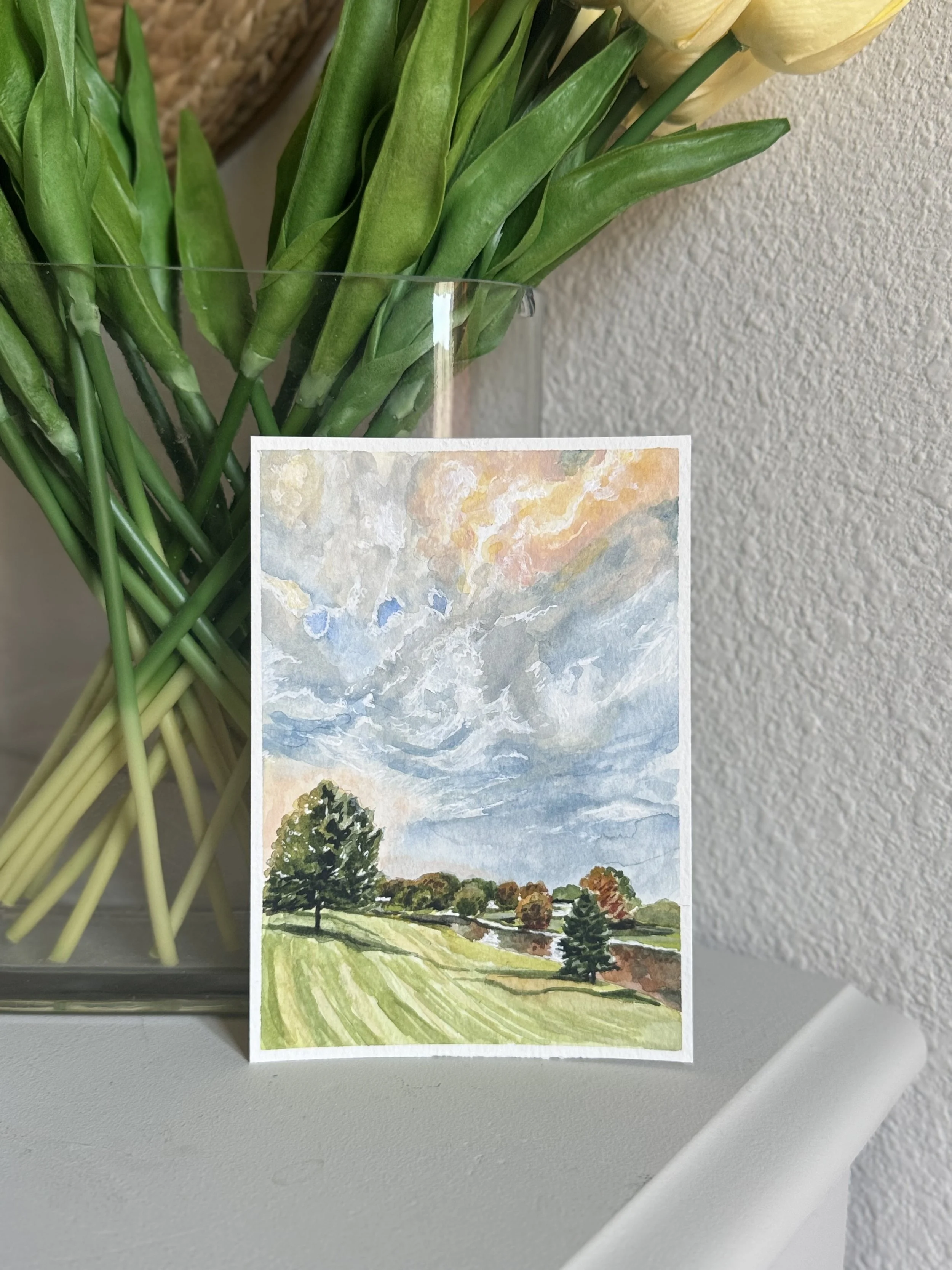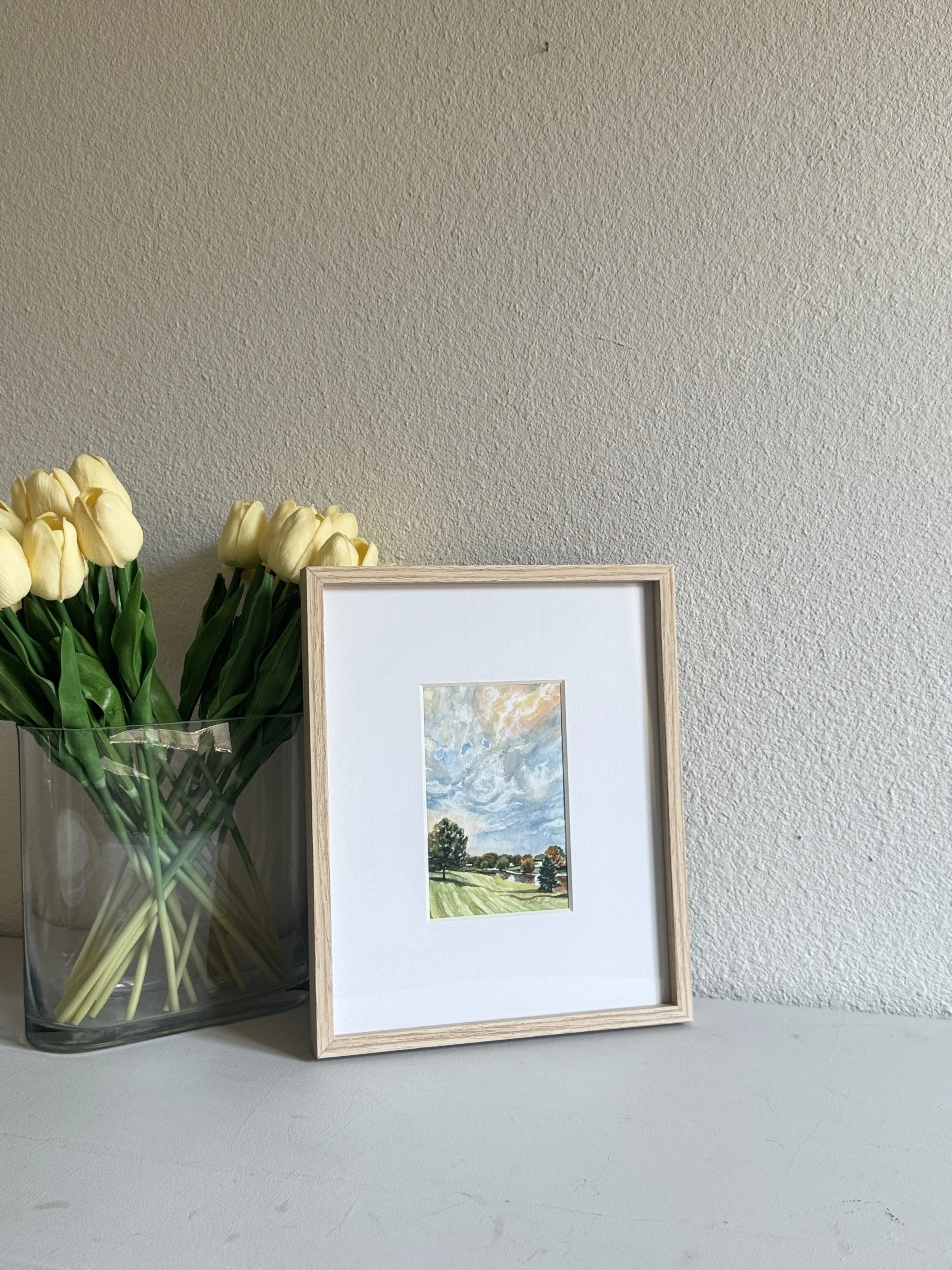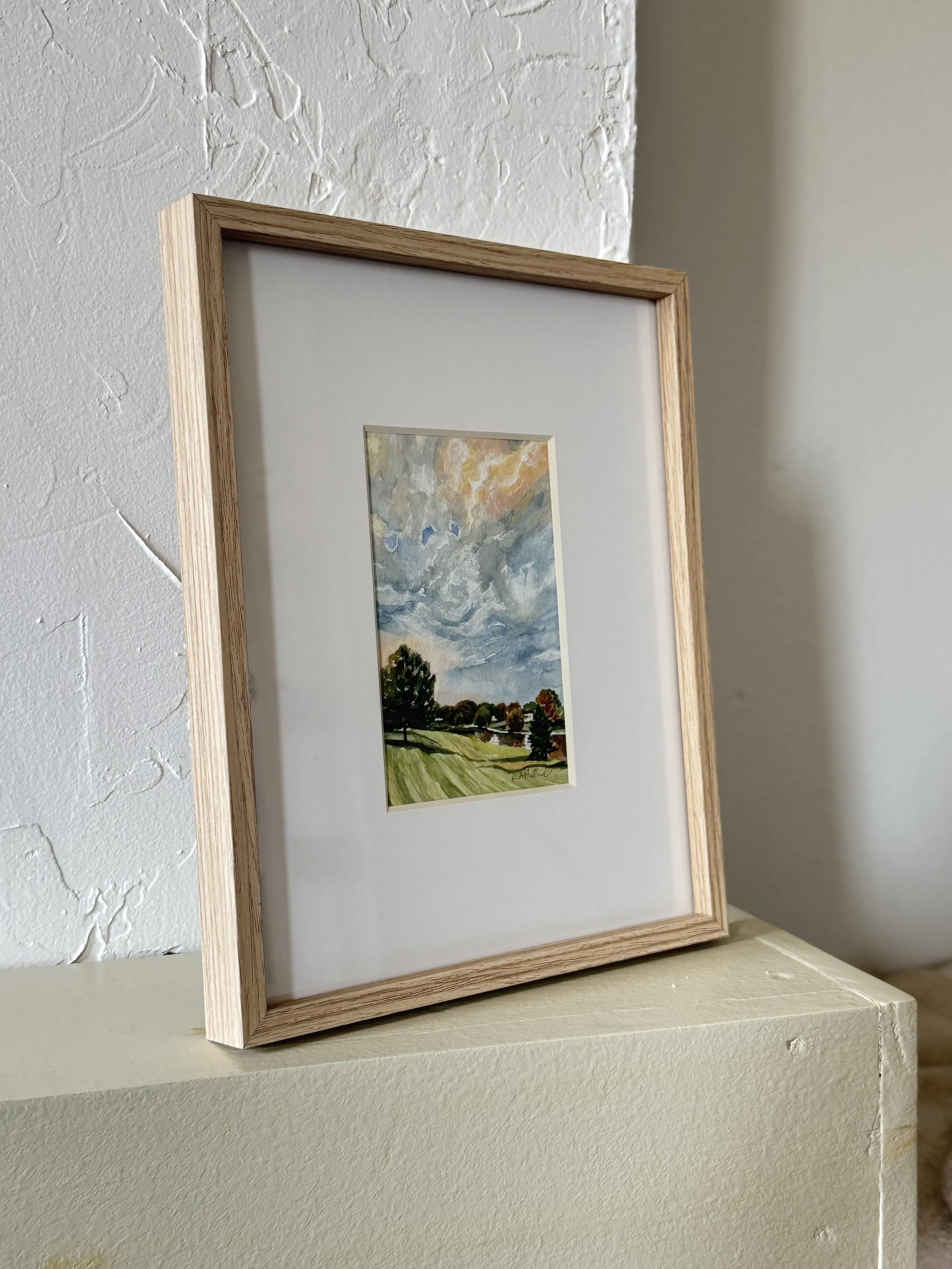 As part of the Mini Monday series, this piece is 3×4 inches with linen matting behind it and placed in a 5×7 standing frame.